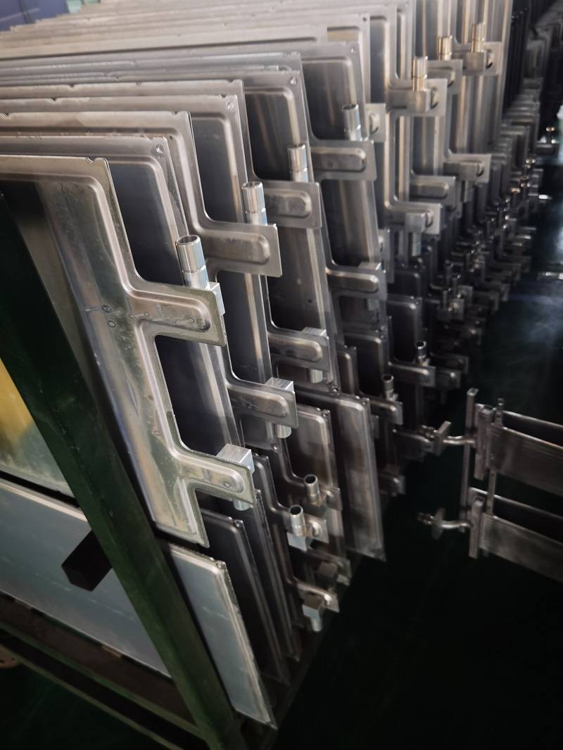 Sistem panyimpenan energi kendaraan listrik umume nggunakake teknologi pendinginan cair. Piring sing digawe adhem banyu energi anyar minangka komponen sing ngganti panas liwat pendinginan cair. Prinsip kasebut yaiku mbentuk saluran aliran ing piring logam. Coolant mlebu saka inlet piring lan metu saka stopkontak. Panas sing dipancarake dening baterei dijupuk. Proses umum kanggo mbentuk saluran aliran piring banyu sing adhem kalebu: welding gesekan, brazing vakum, pipa tembaga sing dikubur, pengeboran bolongan jero, lsp.
